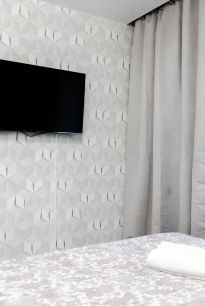 Современная мебель, двуспальная кровать, бытовая техника, скоростной WI-FI, спутниковое TV, гладильная доска, сушилка для белья, фен, оборудованная кухня, полный комплект посуды для приготовления и приёма еды