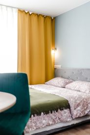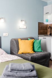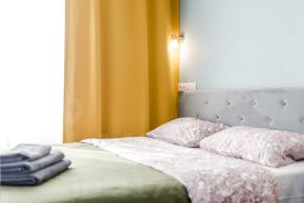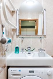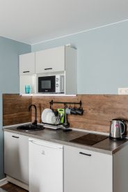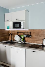 Современная мебель, двуспальная кровать, бытовая техника, скоростной WI-FI, спутниковое TV, гладильная доска, сушилка для белья, фен, оборудованная кухня, полный комплект посуды для приготовления и приёма еды