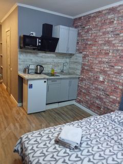Современная мебель, двуспальная кровать, бытовая техника, скоростной WI-FI, спутниковое TV, гладильная доска, сушка, оборудованная кухня, полный комплект посуды для приготовления и приёма еды, мыло, фен