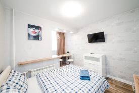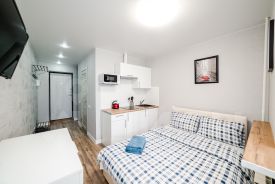 Современная мебель, двуспальная кровать, бытовая техника, скоростной WI-FI, спутниковое TV, гладильная доска, сушилка для белья, фен, оборудованная кухня, полный комплект посуды для приготовления и приёма еды