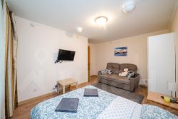 Современная мебель, двуспальная кровать, бытовая техника, скоростной WI-FI, спутниковое TV, гладильная доска, сушилка для белья, фен, оборудованная кухня, полный комплект посуды для приготовления и приёма еды