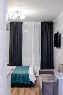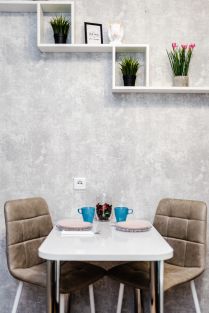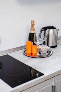 Современная мебель, двуспальная кровать, бытовая техника, скоростной WI-FI, спутниковое TV, гладильная доска, сушилка для белья, фен, оборудованная кухня, полный комплект посуды для приготовления и приёма еды