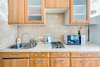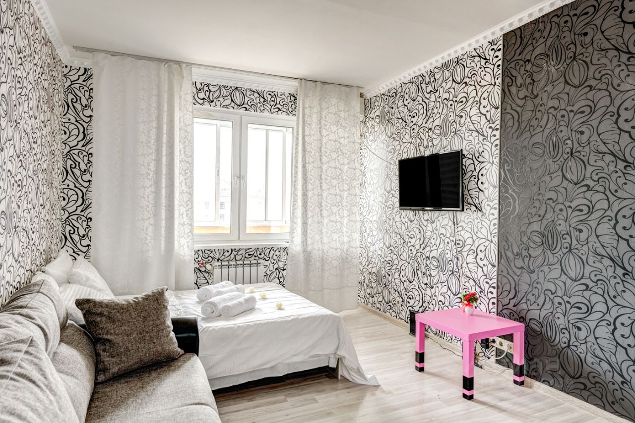 В квартире для удобного проживания имеется современная мебель: двуспальная кровать, диван, бытовая техника, скоростной WI-FI, Спутниковое ТВ, гладильная доска, сушка, оборудованная кухня, полный комплект посуды для приготовления и приёма еды