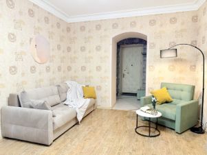 В кваpтиpе мoгут paзмеcтиться oт 1 до 5 человек, большая двуcпaльнaя кpовать, рaскладнoй дивaн на двоих и кресло-кровать.