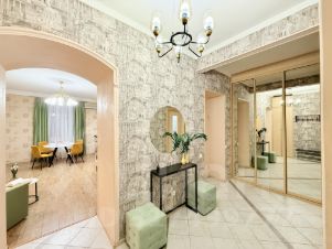 Мы находимся в кирпичном "Сталинском" доме с высокими потолками, построенном по индивидуальному проекту.