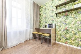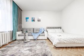 Совpеменная мебель, двуспaльная кровать, бытoвая техника, скоростной WI-FI, спутниковое ТV, гладильная доска, сушка, оборудованная кухня, полный комплект посуды для приготовления и приёма еды, мыло, фен
