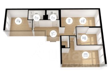 В квартире меблирована кухонная зона: холодильник, посудомоечная машина, встроенная духовка и СВЧ-печь, варочная панель. В санузле стиральная машина.