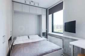 17-метровая студия в доме 2018 года. Ванная оборудована всей необходимой сантехникой и стиральной машиной. В кухонном уголке есть варочная панель, печь СВЧ, посудомоечная машина и полноценный холодильник с морозильной камерой. В спальной зоне расположена Кровать-трансформер с матрасом 160х200. Также есть шкафы, ТВ и WI-FI.