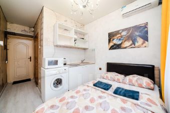 Современная мебель, двуспальная кровать, бытовая техника, скоростной WI-FI, спутниковое TV, гладильная доска, сушилка для белья, фен, оборудованная кухня, полный комплект посуды для приготовления и приёма еды