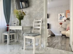 Квартира оборудована современной техникой для комфортного проживания. Вы сможете воспользоваться : посудомоечной машиной, капсульной кофемашиной, тостером, стиральной машиной, чайником, микроволновкой