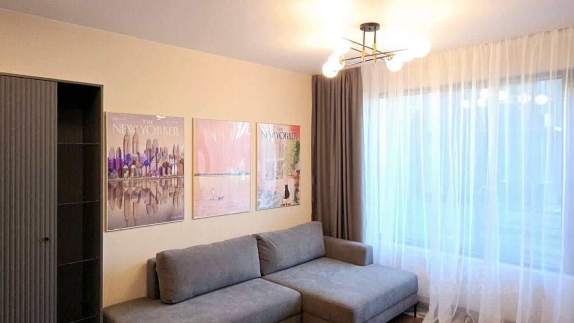 Спальня укомплектована кроватью на 160 см с подъёмным механизмом и ортопедическим матрасом ASCONA, встроенным шкафом, вместительным комодом и QLED-телевизором Shivaki на 43 дюйма с Яндекс ОС.