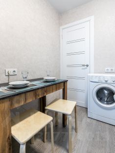 Современная мебель, двуспальная кровать, бытовая техника, скоростной WI-FI, спутниковое TV, гладильная доска, сушилка для белья, фен, оборудованная кухня, полный комплект посуды для приготовления и приёма еды