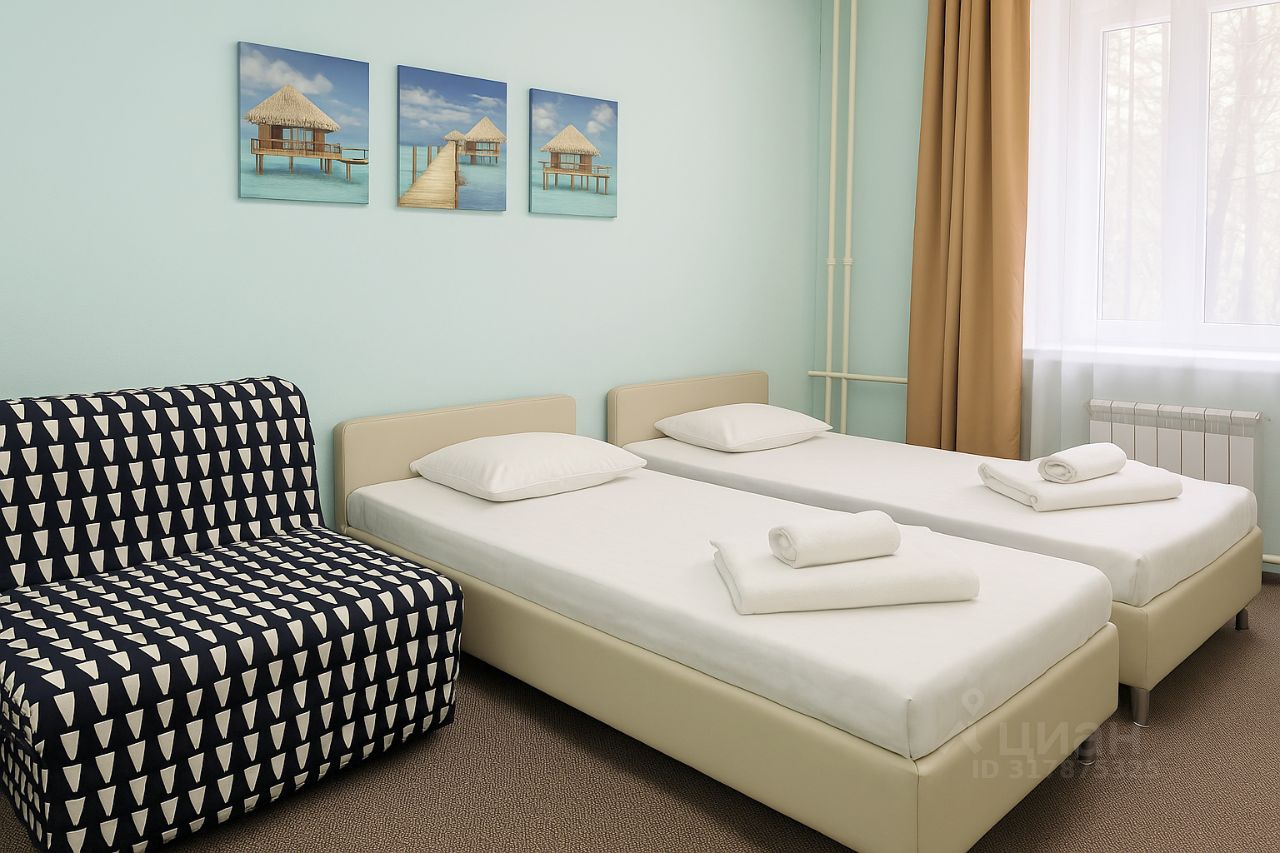 Отдельный номер площадью от 11,2 м2 до 16,3 м2. В номере: двуспальная кровать 140*200 или 160*200, раскладной мини-диван, стол, стулья, шкаф с вешалками для одежды, телевизор, холодильник, чайник, чайный набор. Санузел с душем, фен, туалетные принадлежности (шампунь и гель для душа, туалетная бумага, освежитель воздуха)