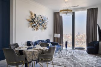 Расположенные в центре Москва-Сити, апартаменты окружены магазинами и ресторанами мирового уровня, включая Sixty, Ruski и Кофеманию.