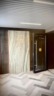 Сантехника от известных европейских брендов. Зеркало в су подогревается, на полу с.у и кухни теплый пол. Керамогранит крупноформатный.