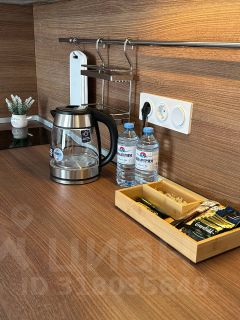 - Холодильник, варочная панель, микроволновая печь, кофемашина, электрический чайник, посуда, столовые приборы, чай, кофе, соль, сахар;
