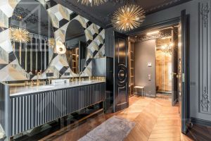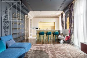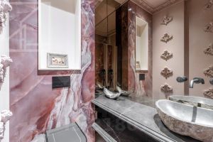 Планировка: кухня-гостиная, мастер-спальня с санузлом и гардеробной, гостевой санузел, постирочная, прихожая. Выполнен новый дизайнерский ремонт. В отделке использован натуральный камень, латунь, замша, цветная гипсовая лепнина. Панорамные окна и потолки высотой 3,3м. Из окон открывается вид в тихий двор.