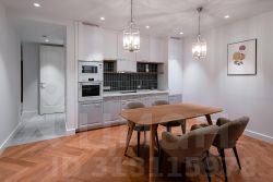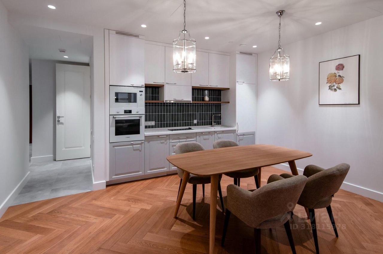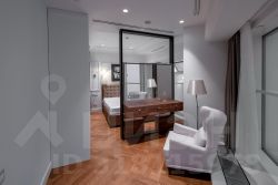Функциональные апартаменты с современной отделкой в стиле неоклассика, панорамным остеклением, полностью укомплектованы бытовой техникой и мебелью.