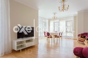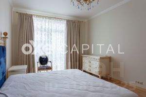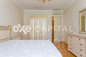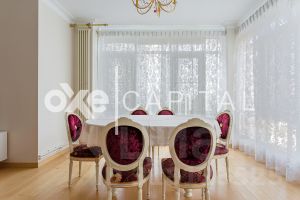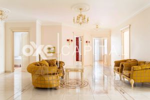 Планировка: просторный холл, кухня, три спальни, кабинет, гостиная, два санузла, две гардеробные . Полностью меблирована и оборудована современной бытовой техникой Miele. Готова к комфортному проживанию. Система кондиционирования (Daikin), Тёплые полы, Фильтрация воды.