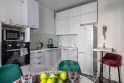 максимально оборудованная кухня с плитой, духовым шкафом, вытяжкой, большим двухкамерным холодильником, свч , посудомоечной машиной, эл. чайником и полным набором посуды