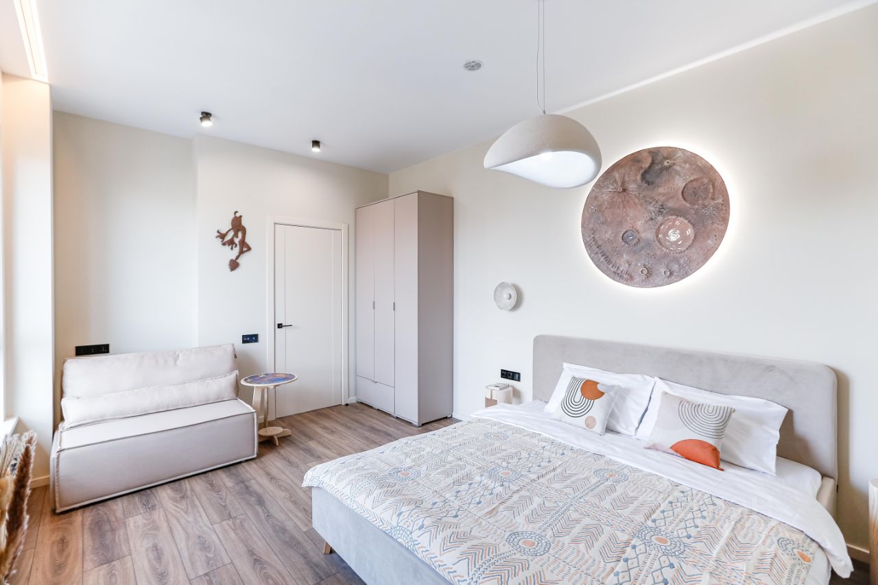Квартира рассчитана на 2 гостей, комфортабельная двуспальная кровать, большой ТВ Смарт, чистое постельное бельё, одеяло и подушки.