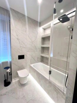 Апартаменты оборудованы бытовой техникой и мебелью: фен, утюг, гладильная доска, стиральная машина, пылесос, чайник, плита, холодильник, микроволновая печь, духовой шкаф, обеденная зона, шкафы. Также предоставляются полотенца, постельное бельё, одноразовые косметические принадлежности и посуда для приготовления пищи.