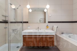 — Ванная комната с душем и ванной, полотенца и гигиенические средства