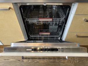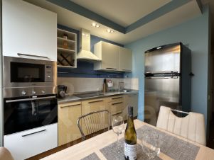Просторная кухня полностью оборудована и готова к использованию. Новая техника : встроенный духовой шкаф, свч, посудомоечная и стиральная машины, варочная панель, холодильник , все от известных , проверенных брэндов : Gorenje, Kuppersberg, Bosch, Whirlpool. Так же квартира оборудована вместительной гардеробной комнатой , что очень актуально для однокомнатных квартир!