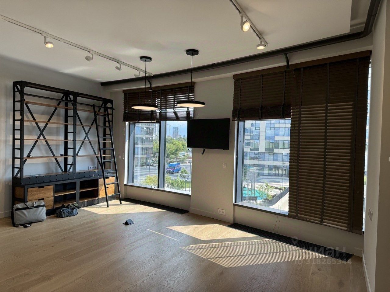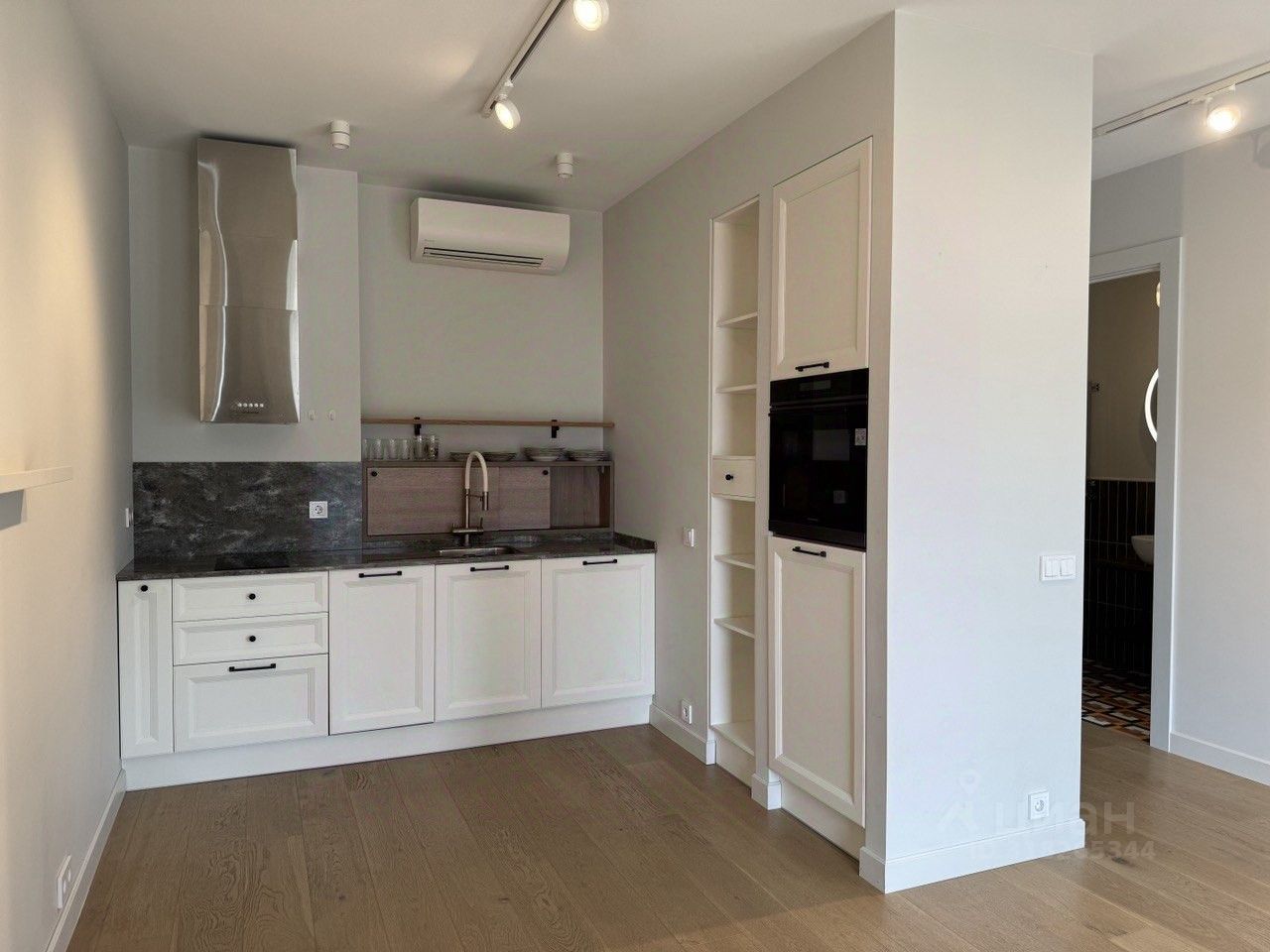 Из мебели предоставляется только стеллаж (опционно, можем забрать в случае ненадобности). Все остальное: кухня, санузел, встроенная техника, встроенные шкафы, телевизор, остается.