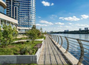 Зона вдоль реки оснащена скамейками и другими зонами отдыха. В пяти минутах от ЖК Акватория расположен зеленый и тихий Левобережный парк, который отлично подойдет для прогулки, бега и любого другого отдыха.
