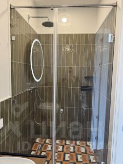 В санузле есть место для бытовой химии, косметики и прочих уходовых средств; полотенцесушитель, душевая кабина с лейкой с эффектом "тропического душа", предусмотрен гигиенический душ. Кухня оснащена плитой из двух конфорок, стиральной машиной, посудомоечной машиной, духовой печью+микроволновкой и маленьким холодильником. Достаточно места для проживания одному.