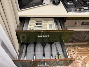 Просторная кухня с варочной поверхностью, вместительным холодильником, микроволновой печью, красивой посудой и всем необходимым для приготовления любимых блюд.