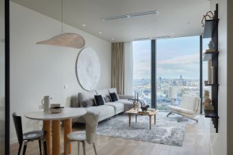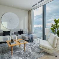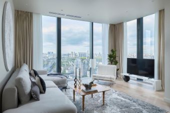 Апартаменты площадью 83,6 кв. м располагаются на 28 этаже башни Neva Towers.