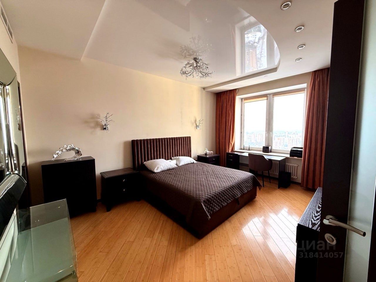 Сдаётся просторная 3-комнатная квартира площадью 109 м² на 36 этаже современного жилого комплекса Воробьёвы Горы в престижном районе Раменки. Из окон открывается захватывающий вид на Москву, включая МГУ, Лужники и Москва-Сити.