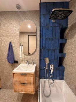 Сдаётся стильная однокомнатная квартира с дизайнерским ремонтом в новостройке на 17 этаже 33-этажного дома. Общая площадь квартиры — 41.9 кв.м, с высокими потолками 2.8 метра. Окна выходят на улицу, откуда открывается приятный вид. Дом построен в 2024 году, оборудован тремя пассажирскими и одним грузовым лифтом. Для вашего удобства предусмотрена наземная парковка, кладовые помещения в корпусе. В пешей доступности студия массажа, уютные кафе, повседневные магазины.