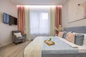 * Современные апартаменты с дизайнерской отделкой, полная безопасность - круглосуточная охрана и индивидуальные коды доступа в здание.