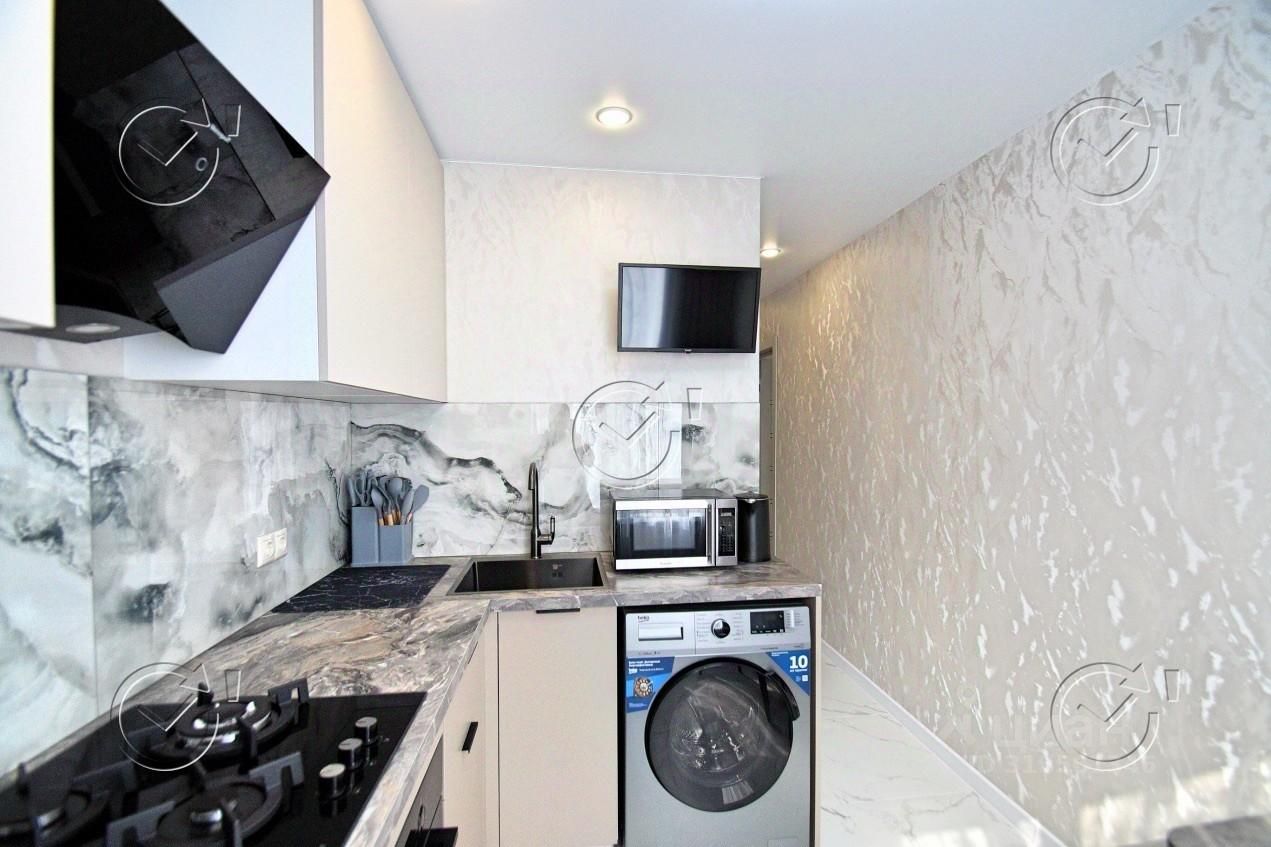 Есть все необходимое для проживания: кухонный гарнитур, варочная панель, духовой шкаф, холодильник, стиральная машинка, СВЧ печь, электрический чайник, 2 телевизора, кухонный стол и табуретки, 2-х спальный диван ( пока вывезен, но могут вернуть), 2 шкафа для одежды, утюг, гладильная доска, сушилка для одежды, пылесос. С/у совмещен, балкона нет. Есть видео обзор по квартире. Окна во двор.