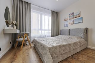- Просторная гостиная с кухней, 2 изолированные спальни, отдельная гардеробная комната, плюс дополнительно шкаф купе. 2 раздельных санузла.