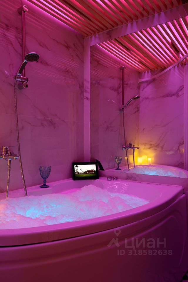 * джакузи с цветотерапией, шампунь, гель для душа, стиральная машина и средство для стирки, тапочки;
