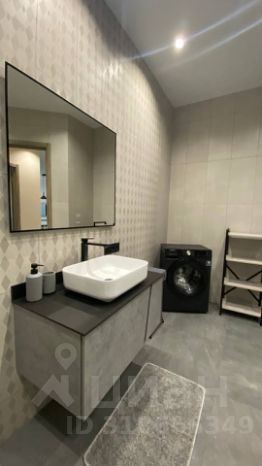 В санузле установлена душевая кабинета, санитарный душ, раковина и зеркало с подсветкой, установлена стиральная машина.