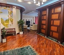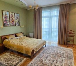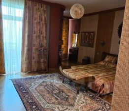 В квартире выполнен дизайнерский ремонт, который придаёт ей уникальный стиль и уют. Планировка включает три совмещенных санузла и один отдельный. Имеется сауна, которая дает возможность расслабиться не выходя из дома, что обеспечивает высокий уровень комфорта. Окна выходят как на улицу, так и во двор, что позволяет наслаждаться видом и тишиной. В квартире есть вся необходимая техника: кондиционер, холодильник, телевизор, стиральная и посудомоечная машины. Мебель в комнате создаёт комфортную атмосферу для проживания.