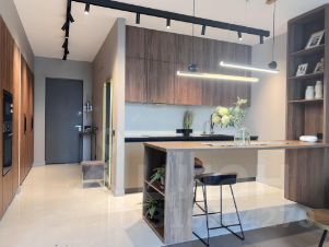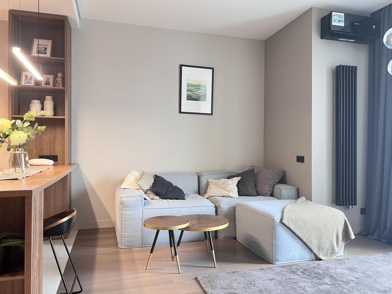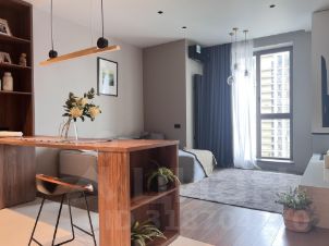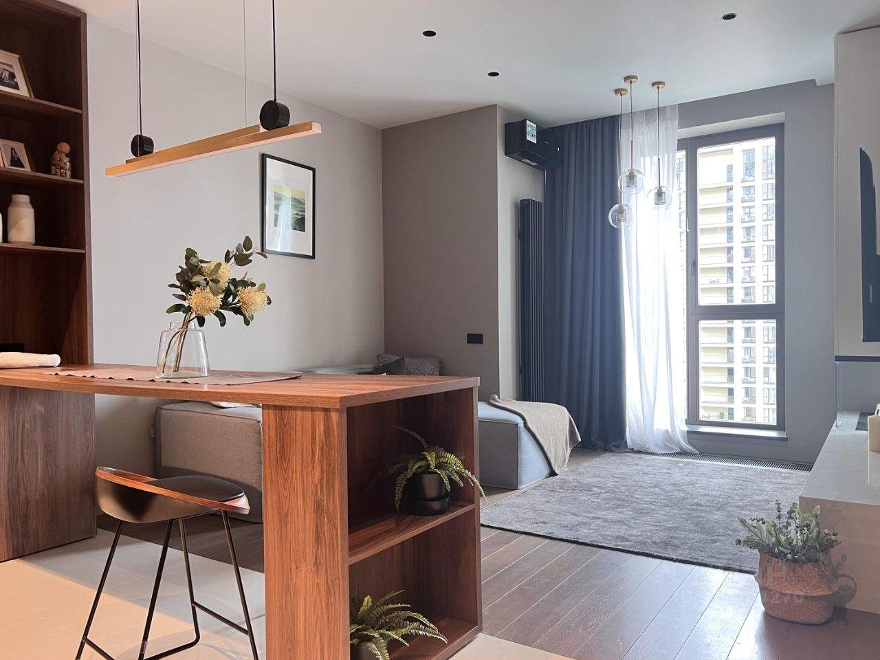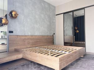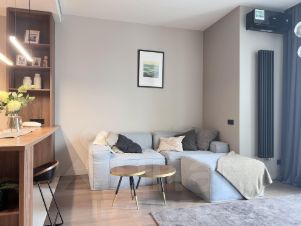 Квартира с дизайнерским ремонтом, просторной гостиной и отдельной спальней, вместительная гардеробная комната. Кухонная зона со всей необходимой бытовой техникой. Совмещенный санузел с душевой кабиной, установлен бойлер, стиральная машина с функцией сушки. Множество систем хранения. На полу деревянная доска, установлены кондиционеры, камин.