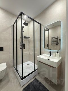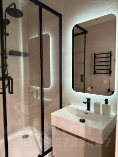 Совмещенный санузел: эргономичная душевая кабина, инсталляция, стиральная машина, теплый пол.