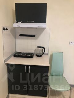 В комнате новый кухонный гарнитур, вытяжка, чайник, СВЧ, плитка, большая лоджия.