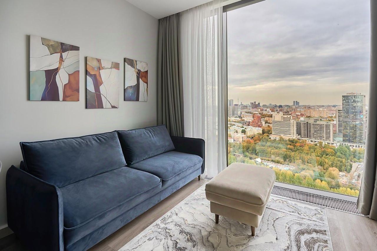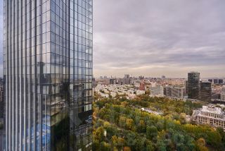 Из квартиры открываются роскошные панорамные виды на, Москва-реку и гостиницу Radisson Collection Hotel Moscow.