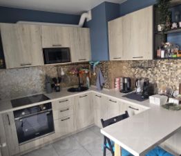 -- Полностью оборудованная кухня, выполненная на заказ