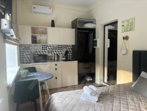 Совершенно новая студия с качественной мебелью, бытовой техникой и постельными принадлежностями. Здесь есть всё необходимое для комфортного проживания: кондиционер, холодильник, микроволновка, полный набор посуды, электрический чайник и плита, а также бесплатный Wi-Fi и телевизор с функцией Smart TV.
