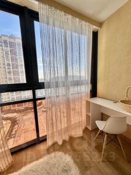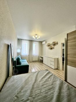 В квартире выполнен современный ремонт, есть все необходимое для проживания: новая, современная мебель (двуспальная кровать, раскладной диван, шкафы для хранения, ТВ уголок, рабочий стол), бытовая техника (холодильник, электрическая плита с духовкой, микроволновая печь, посудомоечная машина, кондиционер, стиральная машина). Имеется просторный балкон с панорамным остеклением.