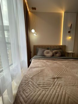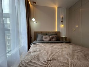 Квартира с дизайнерским ремонтом, полностью меблирована. В комнате и на кухне есть вся необходимая мебель. Установлена современная техника: кондиционер, холодильник, телевизор, стиральная и посудомоечная машина, фильтр для воды! Просторный совмещенный санузел с ванной.
