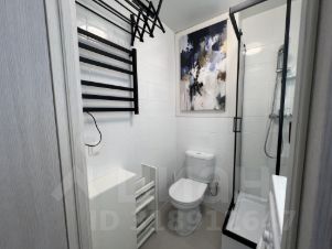 В санузеле новая стиральная машинка, сушилка, зеркальный шкафчик для хранения.